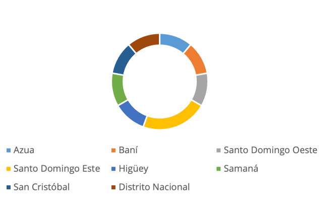 En cuanto a la procedencia de los pacientes, fue muy variada. La provincia de Santo Domingo Este tuvo el mayor auge, presentando 2 casos. Las demás provincias de procedencia fueron: Azua, San Cristóbal, Baní, Santo Domingo Oeste, Higüey, Samaná y Distrito Nacional, en las cuales se documentó 1 paciente para cada una.