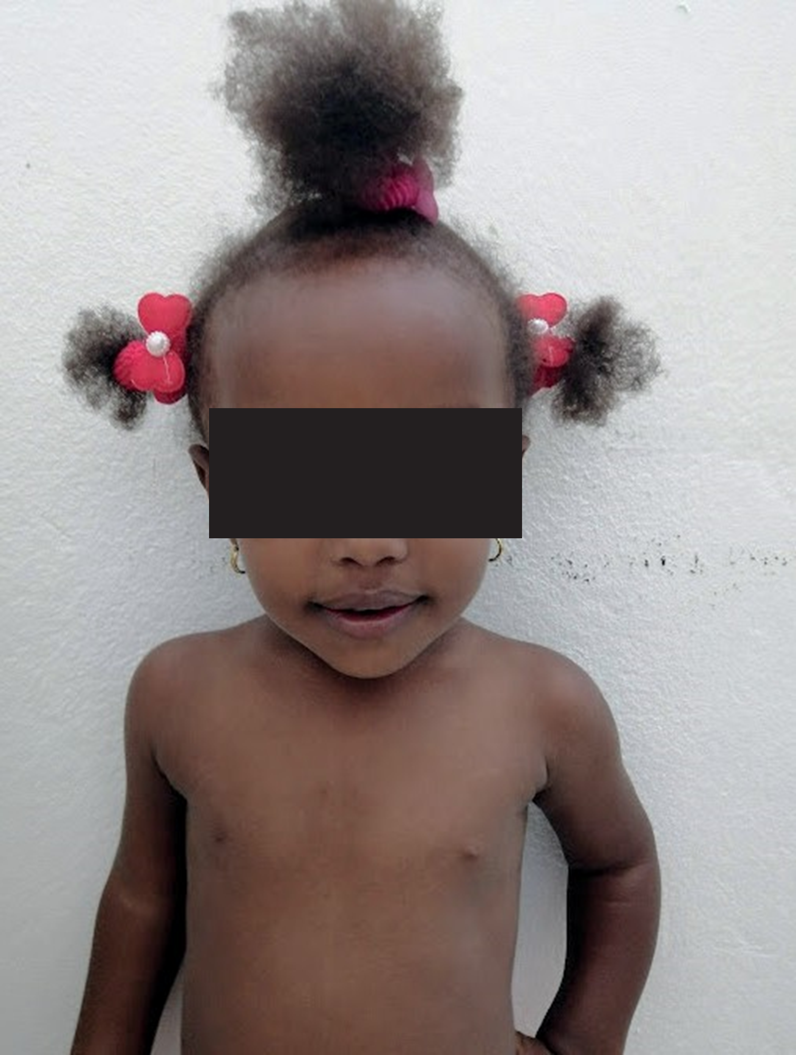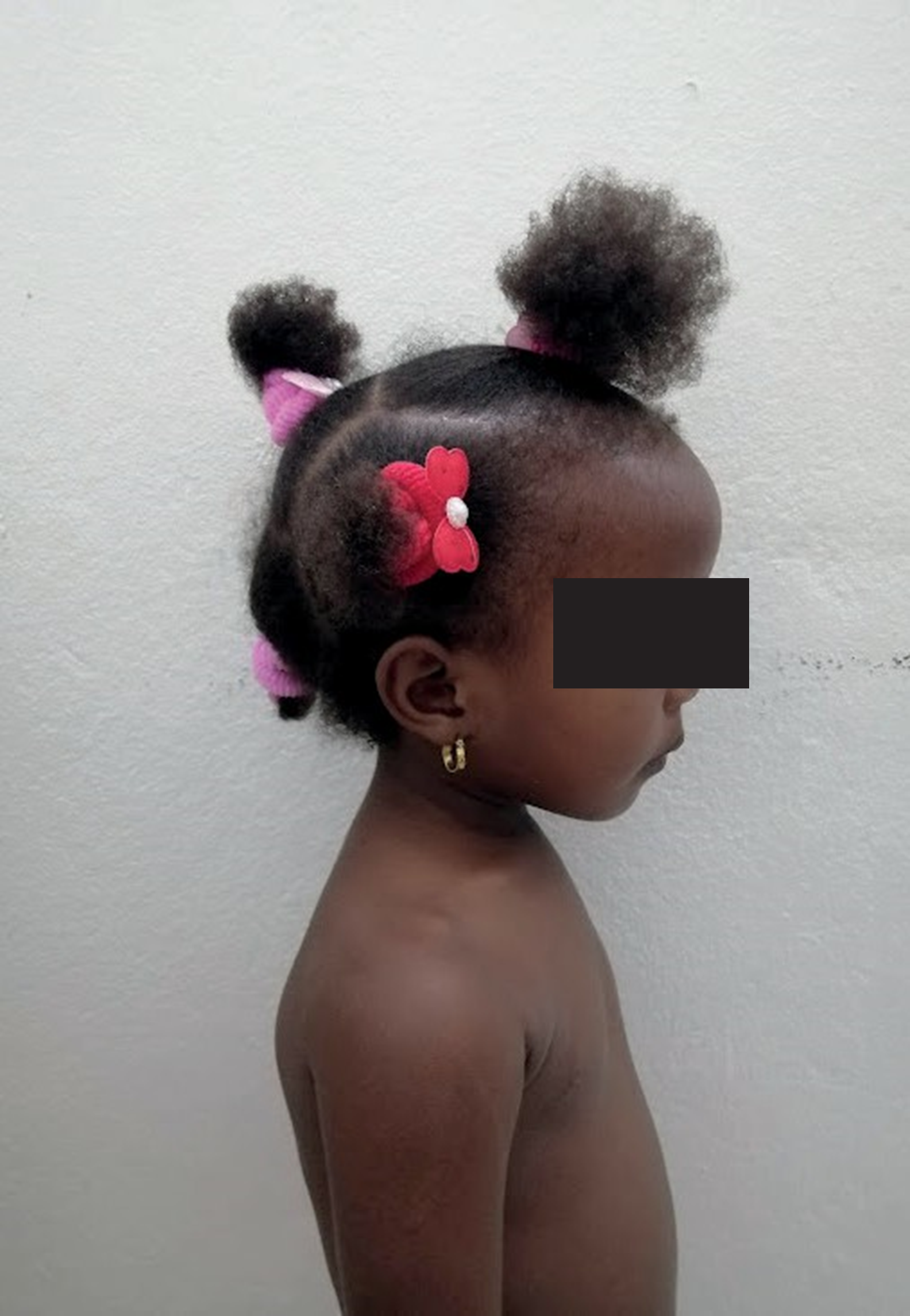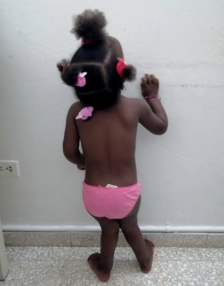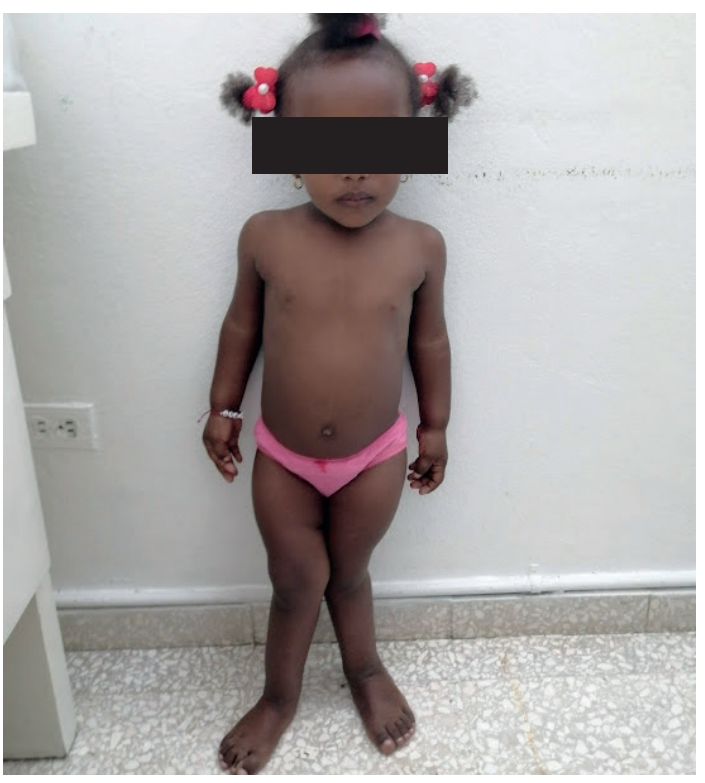 Se trata de paciente femenina de 5 años, dominicana, quien a partir de los 18 meses inicia con deformidades óseas a predominio en miembros inferiores y talla baja para su grupo de edad. Con antecedentes personales patológicos de infecciones respiratorias agudas, amigdalitis recurrentes e hipertrofia de adenoides.